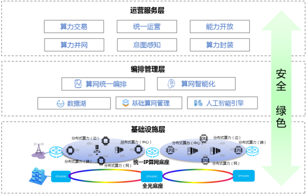 ②数据中心高速全光互联:通过大容量全光高速互联、灵活光电联动和智能全光调度,围绕算力来构建高容量、高可靠、低时延的光网络,保障各算力节点的高速通信。