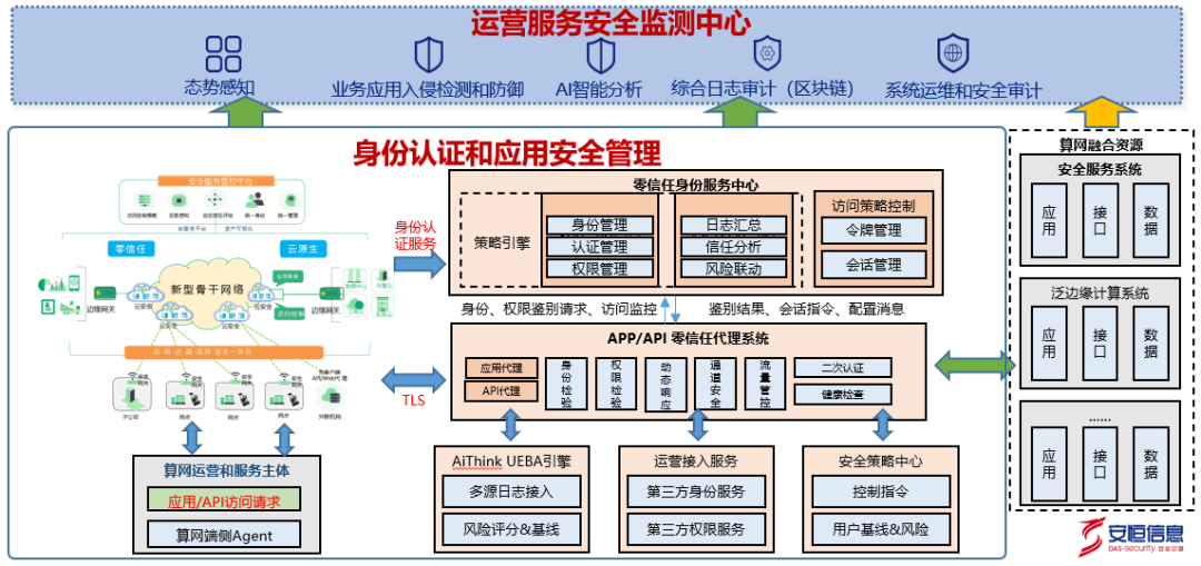 安恒信息AiTrust产品基于零信任思想理念,帮助算力网络构建分布式身份管理和访问应用的异常行为溯源能力,实现身份和应用的可信验证。算力网络大脑可配合TAM身份管理中心和DSG-APP应用代理网关,并结合SPA敲门技术和终端环境感知技术,实现算力节点的动态隐身,算力网络接入设备的流量身份化、权限最小化、信任度量化。