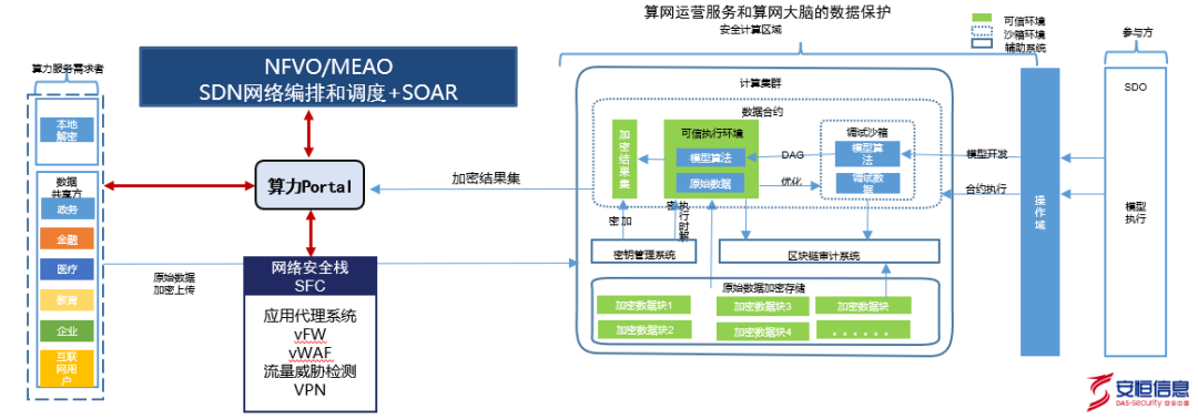 算力网络模式下,数据的处理计算广泛分布在各个边缘计算节点上,数据遭受泄露和篡改的风险增大;且必须防止因为数据泄露导致个人隐私被侵犯的问题。