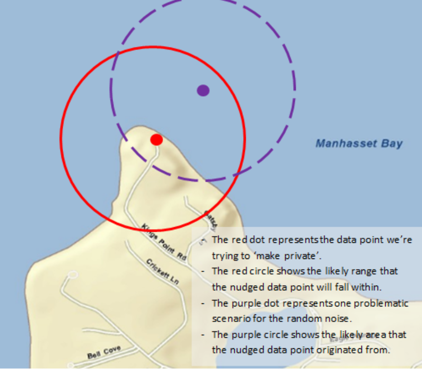 如何精确生成私人地图?利用差分隐私将每个数据点微移一点(如红点)